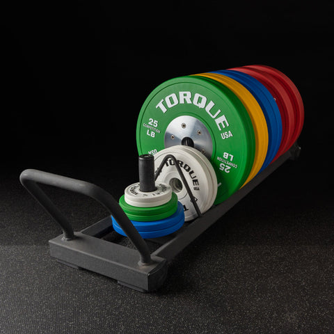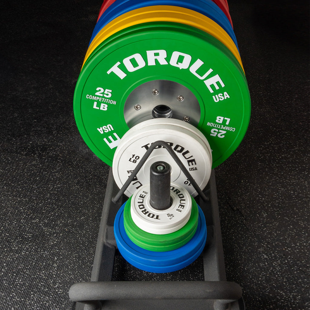 Nylon covered post stores smaller weight plates and collars