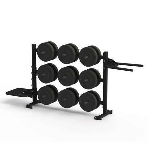 Like our other horizontal storage racks, accessory trays can be substituted for the weight storage.
