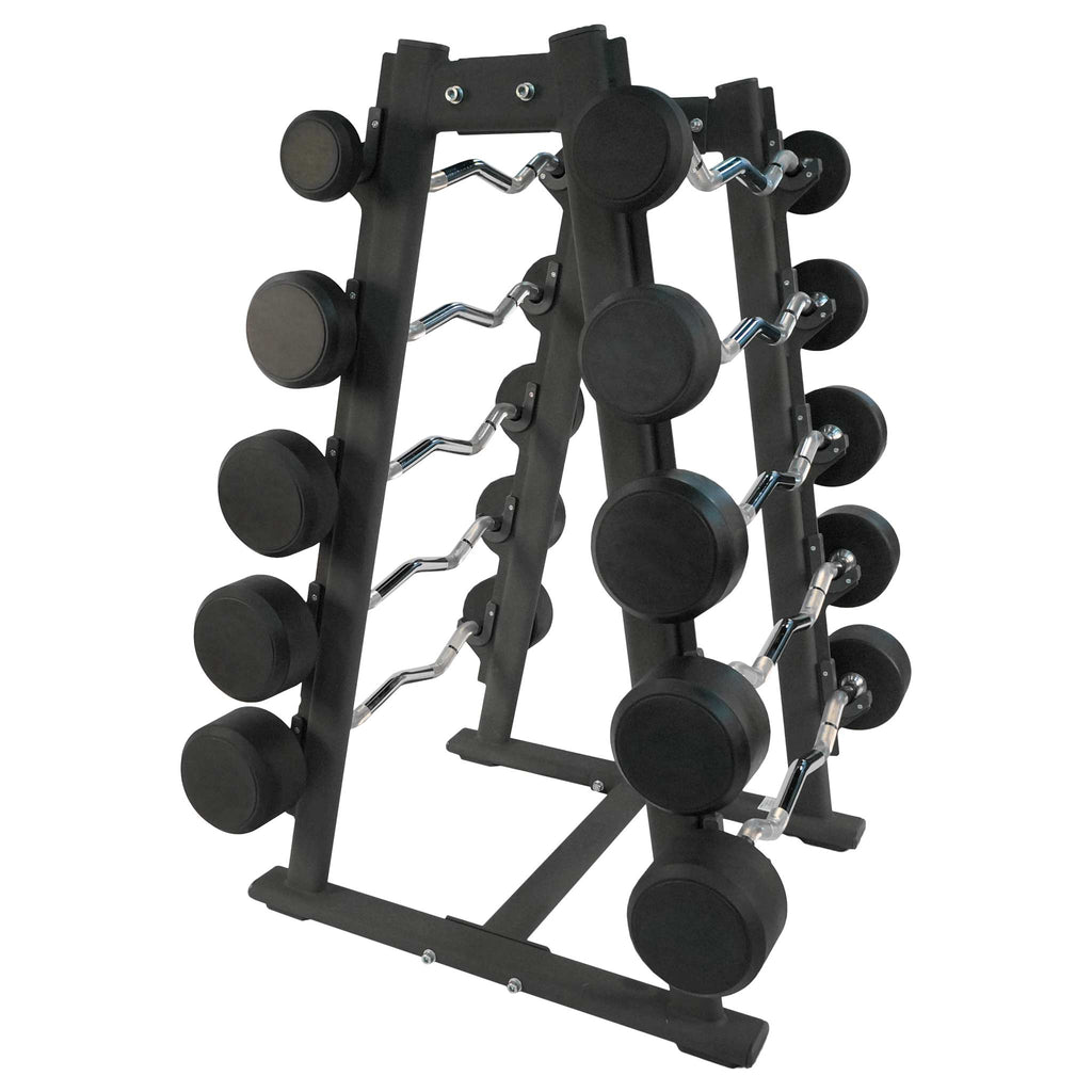 Note: Rack may not fit all brands of barbells. Compare the width between barbell heads to rack width before ordering. Barbells shown are not included.