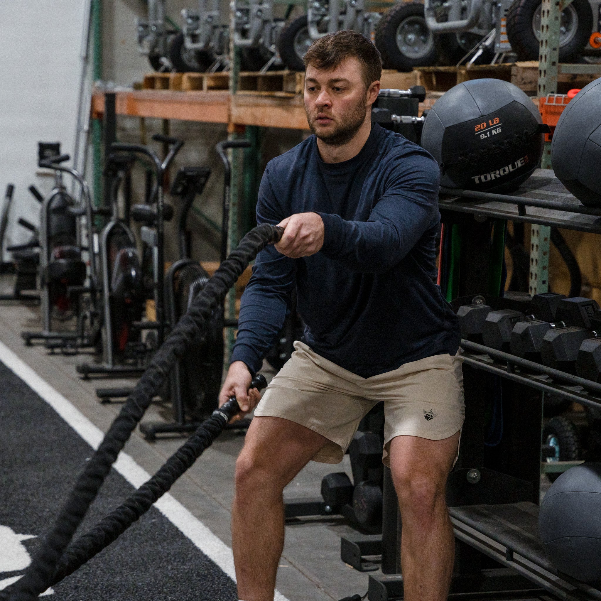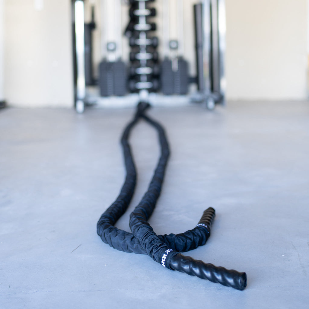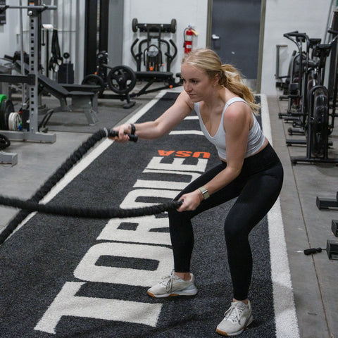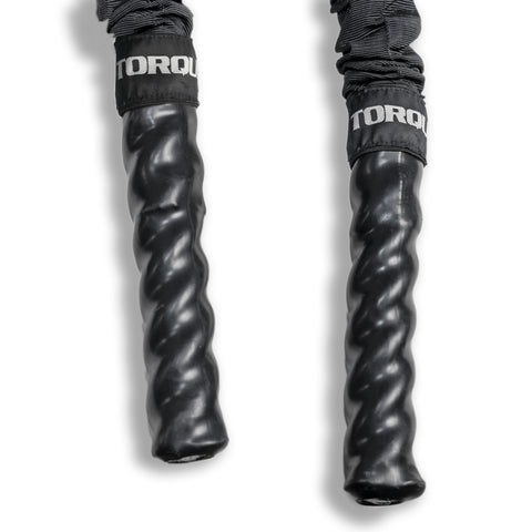 The Torque premium nylon covered battle rope is a great tool for metabolic and strength training. The nylon covering not only helps it withstand abuse; it also dampens the noise from slamming on hard surfaces. The 1-1/2 inch (38 mm) diameter thickness and 30 foot (9.1 m) length make it the perfect weight for users of all types while allowing it to be used in smaller environments. Two of them can be used and stored on the Torque Battle Rope Anchor Pole.