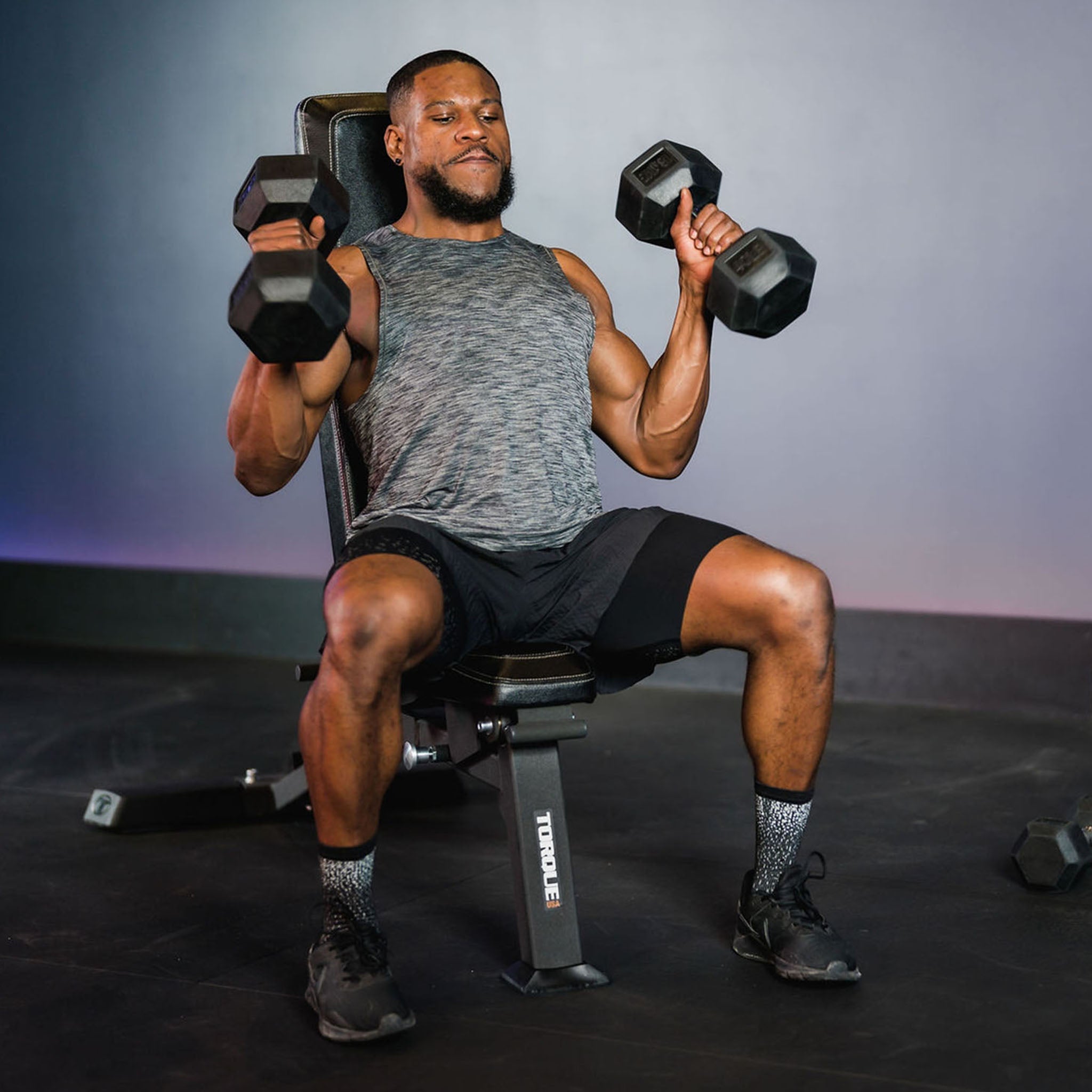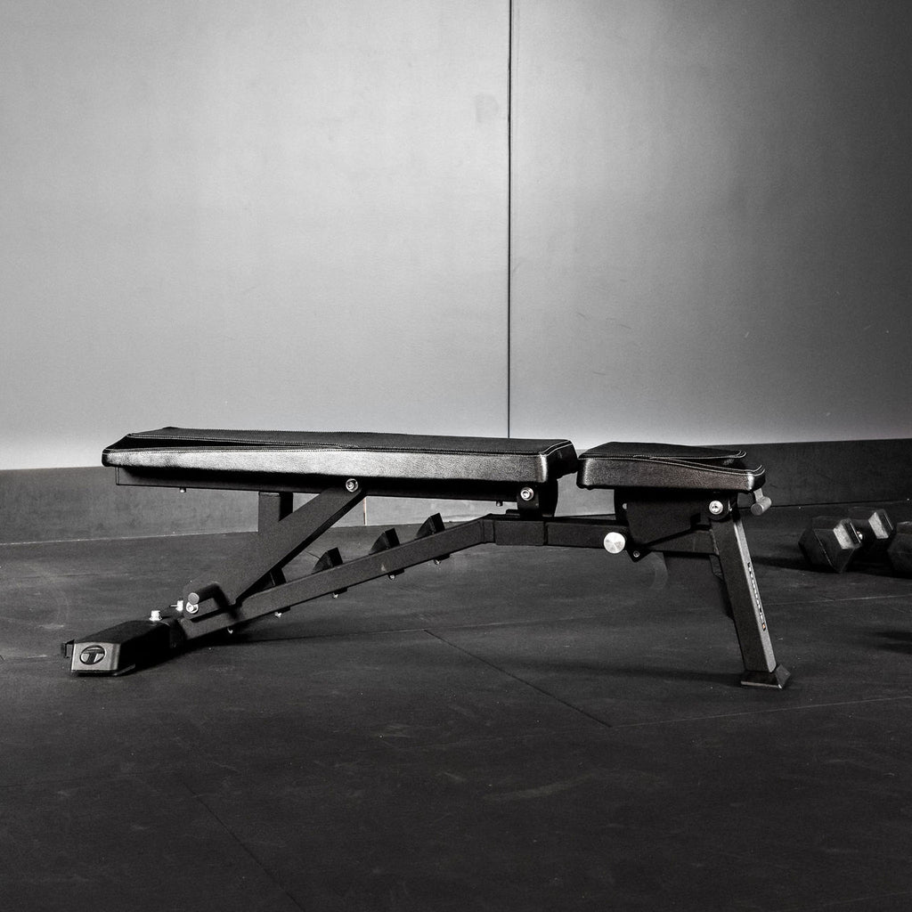 The latest flat-to-incline bench innovation from Torque is built to last in a facility or in a garage. Constructed with non-skid rubber feet, but light enough to maneuver with just one hand, this nimble bench won't go anywhere until you tell it to. The tapered seat edges make for comfortable usage that stands up to time, reps, and sets. Use in a rig, rack, or cage with a barbell, or as a standalone piece with dumbbells.