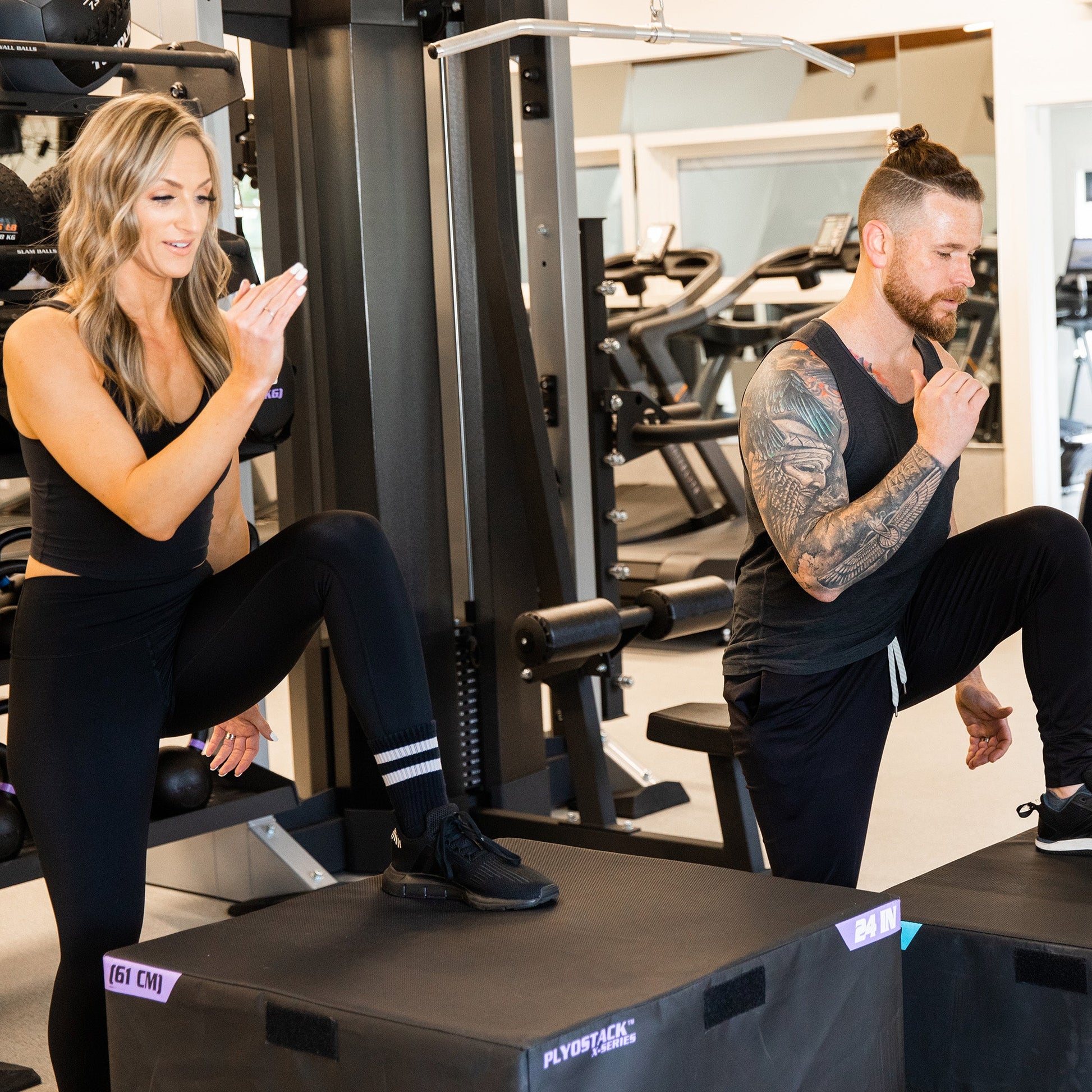 With a combined weight of over 170 lbs, these stackable plyo boxes are as stable as they come. Each 28″ x 28″ box includes unique grabber material making your feet stick on every landing. On our newest version of the PlyoStack™, we've expanded the grabber material on the top in order to cover the entire surface and we have now also covered the bottom of each box in the same grabber material so your plyo box will not slide on whatever surface you choose to use it on.